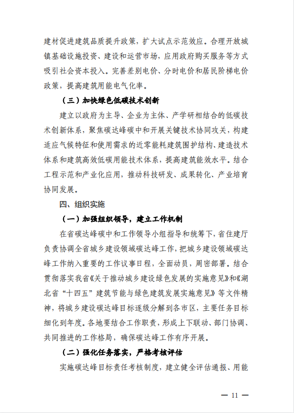 关于印发《湖北省城乡建设领域碳达峰实施方案》的通知