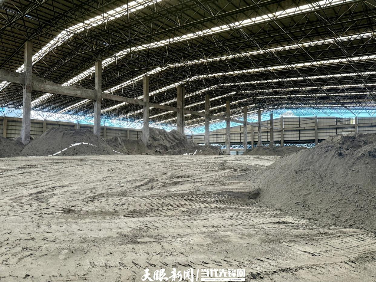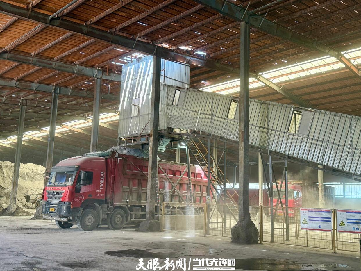 处置车间内,两座红蓝相间的筒仓格外显眼,负责人抬高声音,盖过机器的轻微嗡鸣,指着筒仓介绍:“一个筒装水泥,一个筒存石灰,工人会根据实时检测的酸度,按比例投入搅拌仓,通过酸碱中和使得磷石膏无害化处理后达到中性。”