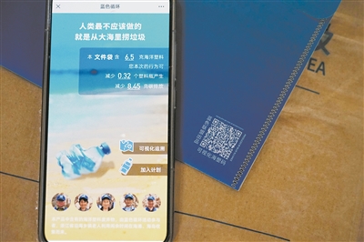 图为扫描废弃海洋塑料制成品上“可视化海塑码”后显示的减排信息。记者 林光耀/摄