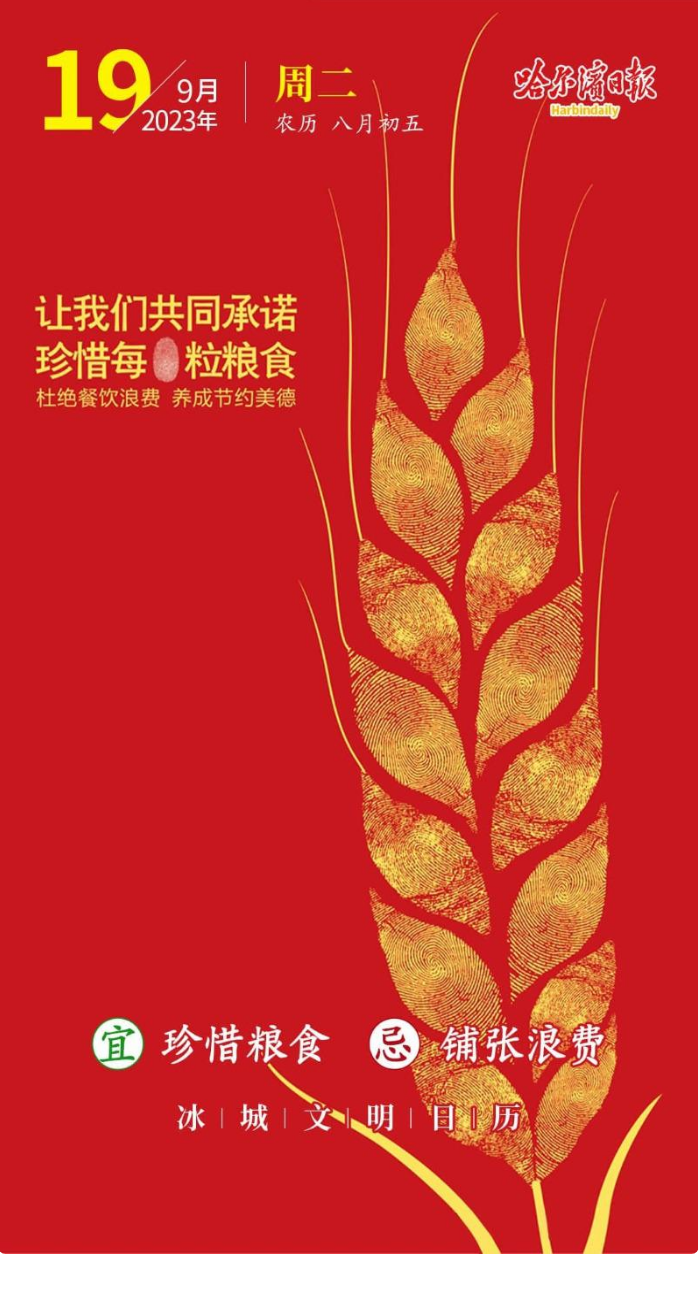 冰城文明日历|让我们共同承诺 珍惜每粒粮食