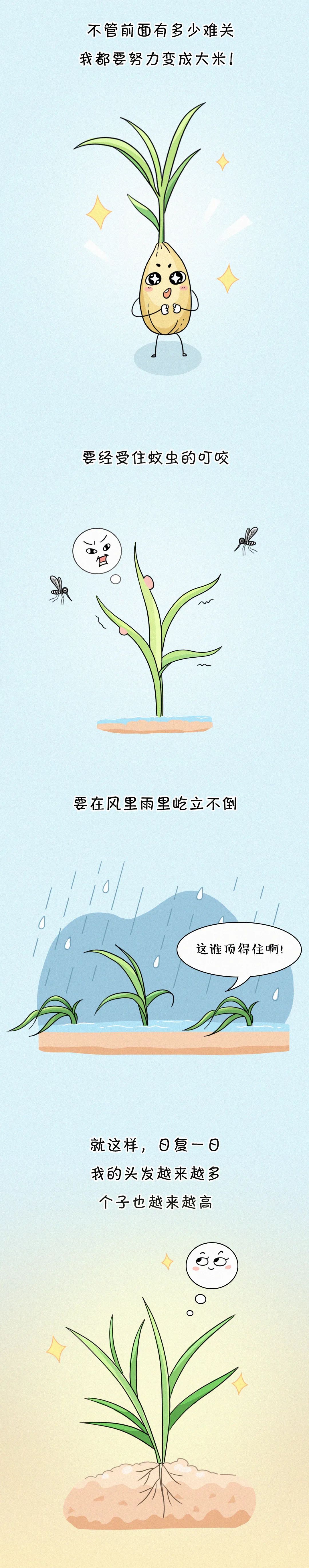 每一粒粮食都来之不易——历经漫长的生长,接受季节的洗礼,终结成果,为人类贡献自己的“一生”。今天,跟随一则漫画,来看一粒米的故事。
