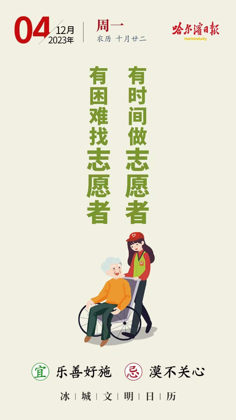 冰城文明日历|有困难找志愿者 有时间做志愿者