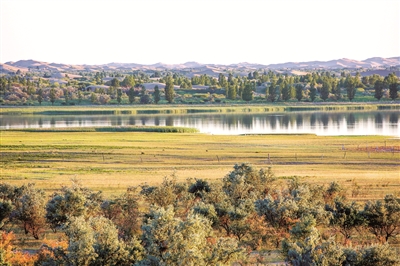 在杭锦旗库布其沙漠亿利治沙护河锁边林东沙护河项目区,亿利资源集团党办主任、库布其沙漠公司副总经理贺鹏飞指着沙丘中一片片的绿荫说,这里距黄河仅8公里,西北侧的沙漠与黄河曾经直接接壤,历史上多次导致黄河断流,锁边林工程就像一条拉锁将沙子牢牢锁住,有效保卫了黄河。