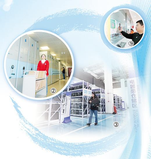图②:江苏省常州市委市政府集中办公区,工作人员在集中档案库整理档案。王栋栋/摄