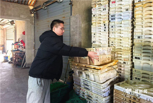 记者在海溯小站把鱼筐分类。记者周文丹/摄