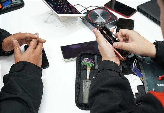 一家二手交易平台的上门回收工程师,在练习手机拆修 张晨霖/摄