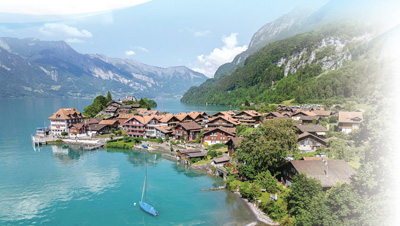 瑞士村庄伊瑟尔特瓦尔德位于阿尔卑斯山布里恩茨湖岸边,风景如画,村中自建房与周边自然环境融为一体。法布里斯?科夫里尼/摄(影像中国)