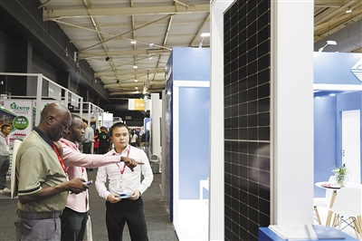 展会上,多家中企带来了最新的光伏发电技术和产品,吸引众多客商驻足。记者 杨讴/摄