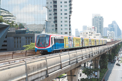 交通拥堵是曼谷城市发展中的一大难题。曼谷的轻轨BTS和地铁MRT两大轨道交通系统在一定程度上缓解了交通压力。BTS是由曼谷大众运输系统有限公司运营的高架快速交通系统(见图,本报记者杨一摄),由3条线路共62个站点组成,总线路长度约70公里。MRT由泰国大众捷运管理局运营,目前有5条线路,总线路长度超过130公里。仍在不断建设、扩大覆盖范围的曼谷轨道交通系统,是东南亚最发达的城市轨道交通系统之一。