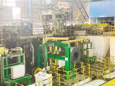 图为一家钢铁企业的钢卷板生产线。徐卫星/摄