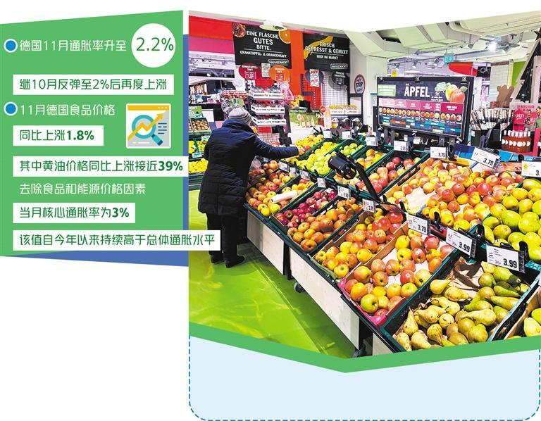 德国最新官方数据印证了德国人生活压力的增加。德国联邦统计局近日公布的数据显示,受能源价格跌幅收窄影响,德国11月通胀率升至2.2%,继10月反弹至2%后再度上涨。