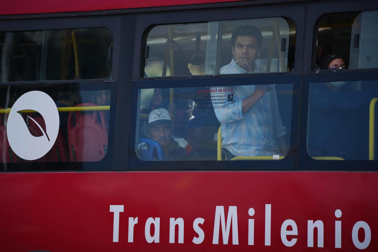 2月6日,人们在哥伦比亚首都波哥大乘公共汽车出行。
