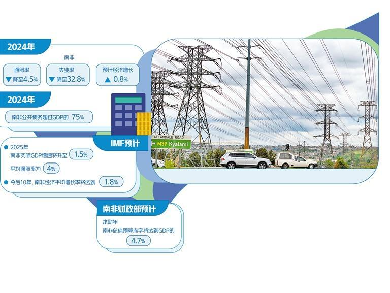 南非财政部随即发布媒体声明称,总体来讲,IMF的关注与南非政府应对当前和长期经济挑战的反应是一致的。继2023年和2024年南非经济表现低迷后,在购买力上升、就业复苏和财富增长等积极因素的支持下,南非经济增长有望在2025年复苏,预计增长率将从2024年的1.1%提升到2025年的1.7%。与2024年预算审查时相比,南非经济前景面临的风险更为平衡。