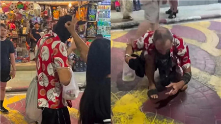 这起乌龙事件在社交平台迅速走红网络。视频显示,这名身穿红色花纹衬衫的外国男子正悠闲逛街,帽子上趴着的蟑螂格外醒目。一位热心女士经过时,不假思索地伸手将蟑螂弹走。