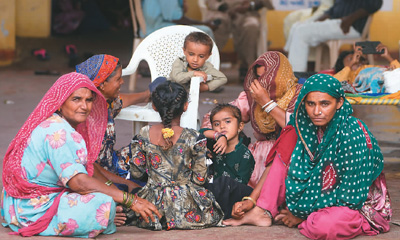 6月17日,在印度古吉拉特邦杰考,人们坐在临时居所内。飓风“比帕乔伊”过境,印度西部超过10万名民众受到影响。新华社/美联