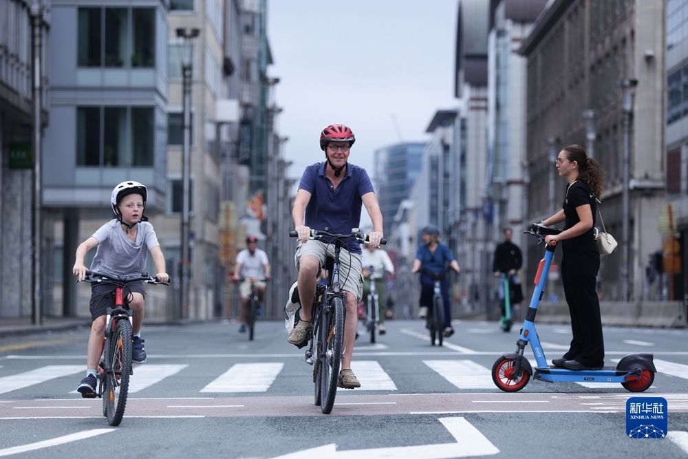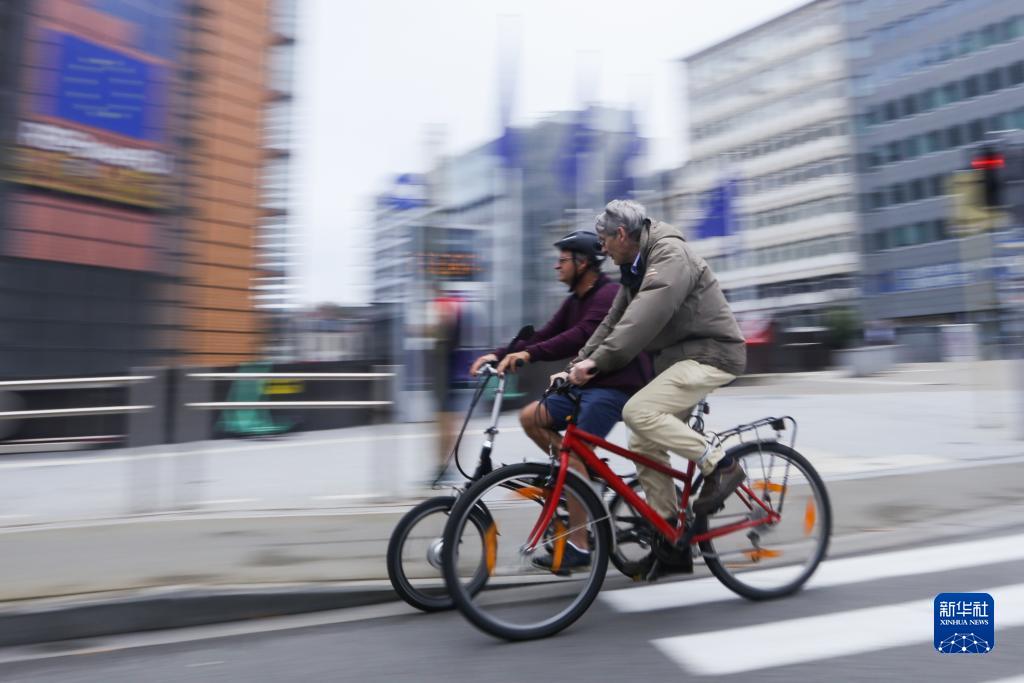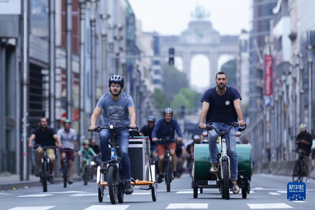 9月17日,人们在比利时布鲁塞尔的“无车日”骑自行车出行。新华社记者 郑焕松/摄