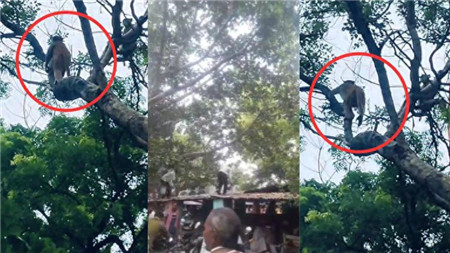印度猴子抢走8万卢比钱袋,爬上树大撒钞票引发民众哄抢
