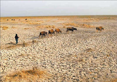 伊拉克南部美索不达米亚沼泽地区长期干旱少雨,一些湿地出现干涸。伊纳斯·易卜拉欣/摄