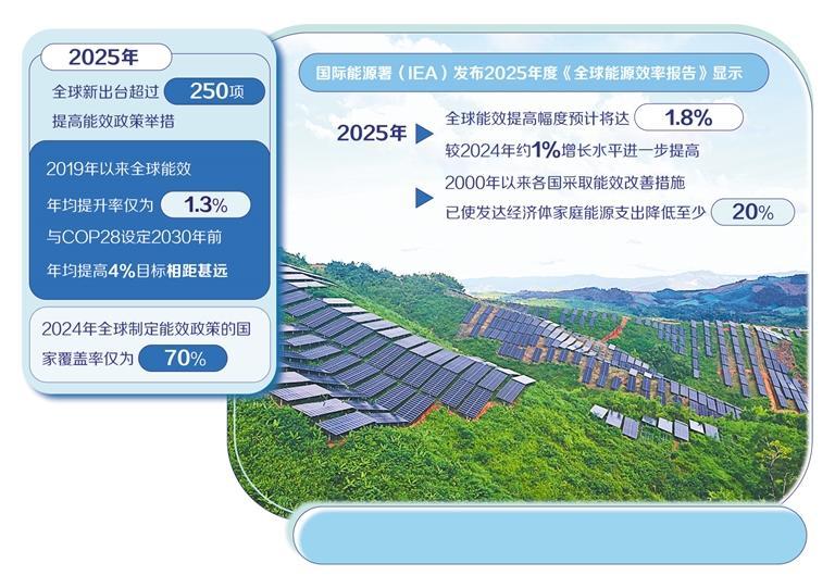 2025年,全球新出台超过250项提高能效的政策举措,不仅标志着全球主要经济体越来越重视强化能源安全与经济发展的战略布局,也透视出能效提升正成为应对全球经济与能源政策的优先议题。国际能源署(IEA)近日发布2025年度《全球能源效率报告》,向世界展示了积极但又存忧的全球能效现状。