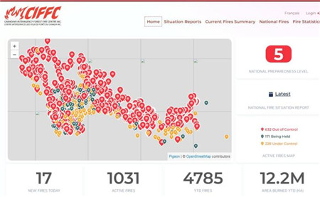2023年春夏以来,加拿大森林火灾频发,给加拿大乃至北美地区带来严重影响。加拿大森林消防中心数据显示,从2023年初至今,已记录了4785起火灾,累计过火面积超12.2万平方公里。加拿大跨部门森林防火中心称,2023年是该国有史以来野火最严重的一年。
