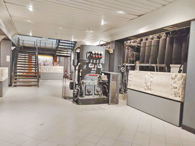 意大利蒙特马尔蒂尼中心博物馆位于首都罗马南郊台伯河畔的工业区内,是一家具有“摩登时代”风格的特色博物馆。展厅内一排古罗马神话雕像背后,是一台1931年生产的巨型柴油发动机,机身油渍依然清晰可见;在旁边展厅,巨幅马赛克镶嵌画上方是天然气管线。