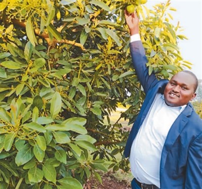 乌干达一家果园的负责人展示有机牛油果。黄培昭/图