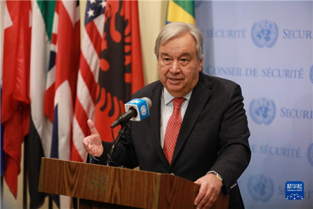 11月27日,联合国秘书长古特雷斯在纽约联合国总部向记者讲话。新华社记者 谢锷/摄