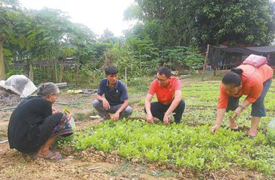 中国—老挝合作农作物优良品种试验站的农业专家在老挝农村指导当地村民种植蔬菜。陈玖忠/摄