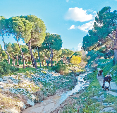 每到冬季,位于西班牙首都马德里西南近郊的“奇幻小道”森林公园(见图,本报记者许海林摄),就成了很多民众出游的胜地。漫步在这条长约1.5公里的森林步道上,两旁装饰着极具童趣与创意的小火车、雪橇和小木屋等模型,宛如置身童话世界。这些物件多是就地取材,由木桩制成,让孩子们更能体会到自然的乐趣。