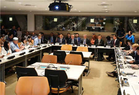 当地时间2025年7月14日,中国“两山”理念支撑可持续发展边会在纽约联合国总部举行。中新社记者廖攀摄
