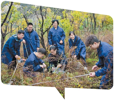 程芳琴(后排左三)带领团队开展样方调查研究。山西大学供图