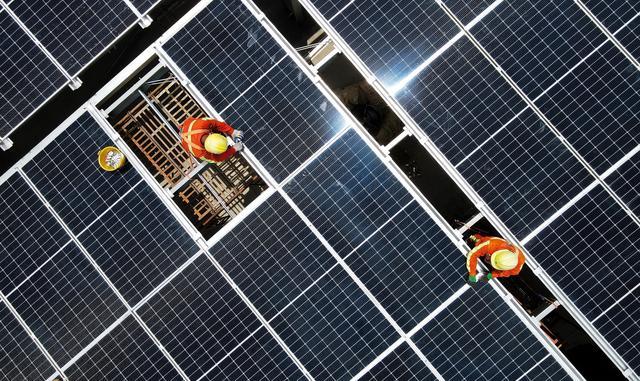 施工人员正在进行光伏板安装。图片来源:人民网