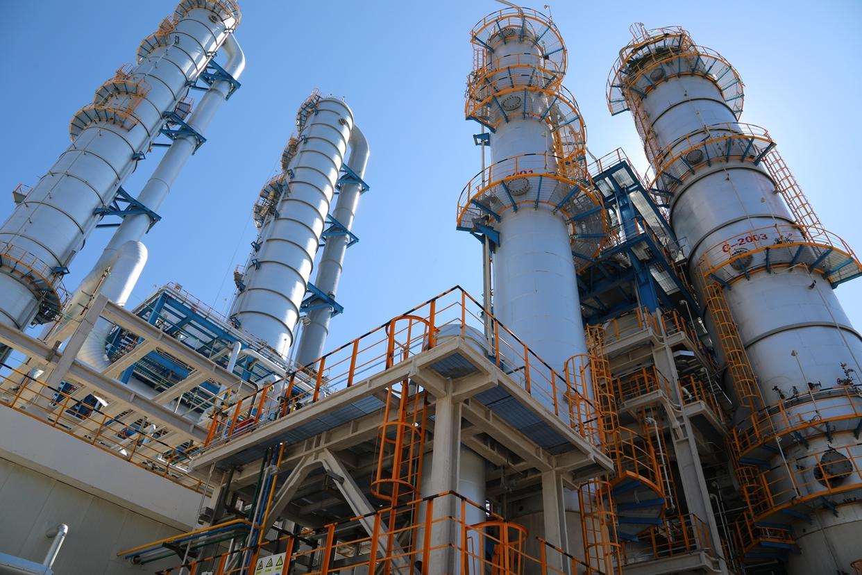 正在开展蒸汽吹扫的60万吨年苯乙烯装置