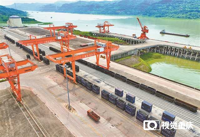 而万州新田港优势就很明显。火车直接开进港口,再由吊车抓取放入船舱,减少转运环节。