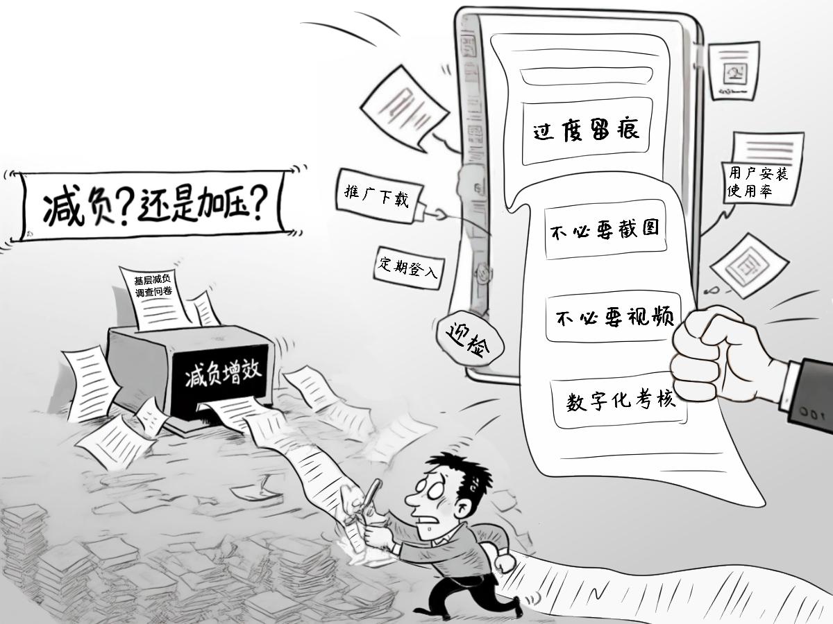 在执行过程中,一些地方出现了形式主义新苗头,从中央和地方通报的一些典型案例看,有的体现工作成效在于作秀而不是做事,频繁搞调查问卷,还对测评满意度提出硬性要求;有的依托政务App搞起了“痕迹管理”,过度依赖数字化考核平台的线上响应、打卡、报表,把“痕迹管理”变成了“痕迹主义”;有的在落实“属地管理”“层层压实责任”要求时,出现了将自身职责下移的现象。以上这些在推进基层减负工作中出现的新情况、新问题,不从实际出发,不按规律行事,容易让基层减负变成“基层任务”,与减负的目的背道而驰。