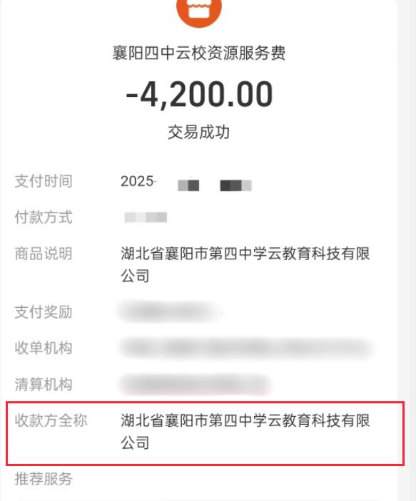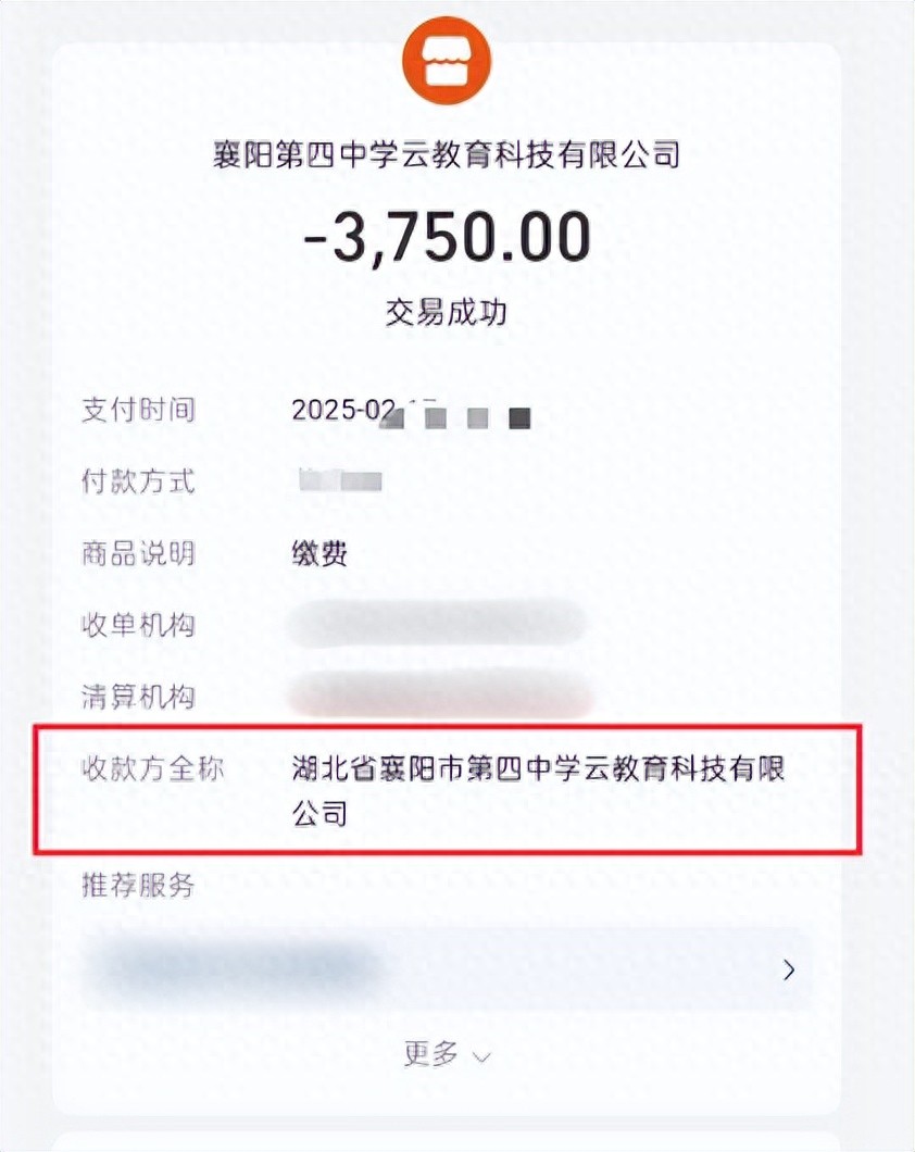 其次,成本真相需要公开。家长提供的两张转账记录合计7500元,收款方是“湖北省襄阳市第四中学云教育科技有限公司”。公开工商信息显示,该公司成立于2023年11月,注册资本1000万元,由两家重庆教育科技公司控股,除此之外并无教研成果、知识产权或经营规模记录。