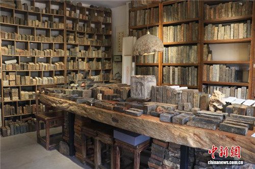 古砖收藏馆内,各类古砖陈列有序。吴怡欣/摄