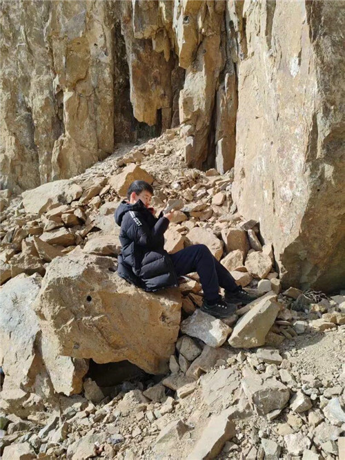 倪景辰在野外寻找化石早期蝾螈类两栖动物“留痕”