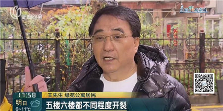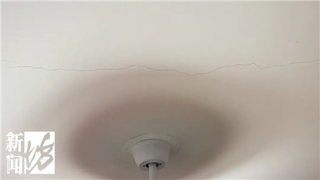 王先生绿苑公寓居民:五楼六楼都不同程度开裂,下雨天都漏水,天花板都有裂缝。所以我们住在楼上整天提心吊胆的,睡觉也感到害怕,现在变成“危房”了,希望恢复原样。