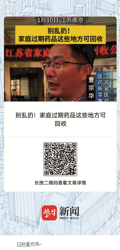 “很多老百姓对于过期药品的危害还不是很清楚。”江苏省医药商业协会医药新零售分会副秘书长、江苏省医药有限公司零售总经理曹宗华说,过期药品的危害主要有几个方面:一是药品过期后质量发生变化,会失去治疗作用,使用后可能贻误病情;第二,药品里的化学原料如果处置不当对环境有害,属于“有害垃圾”;第三,有一些不法分子会利用回收药物进行再包装,“回流药”危害大众的身体健康和生命安全。