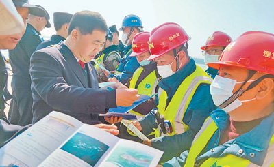 江苏省泰州市高港区人民检察院检察官来到泰州港码头,查看企业安全生产情况并进行法治宣传。陈新/摄(人民视觉)