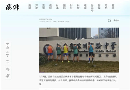 2025年3月2日,苏州马拉松上演荒诞一幕:5名参赛选手在江苏省苏州实验中学的校门牌匾前小便,尽管有跑友指出,20米外就有一排移动厕所。