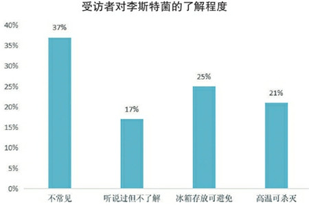 此次调查发现,17%的受访者表示听说过但不了解李斯特菌,37%的受访者认为它是一种不常见的细菌,而25%的受访者甚至认为,把食物存放到冰箱里,能有效避免被李斯特菌感染。