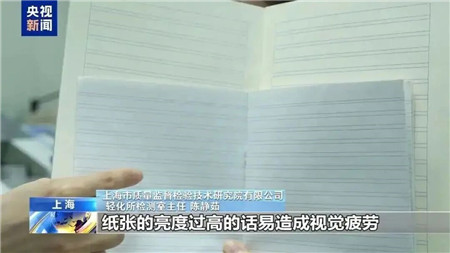 专家表示:“小朋友在做作业的过程中,纸张的亮度过高,易造成视觉疲劳,对眼睛的刺激比较大,长期接触对视力是有不利影响。”