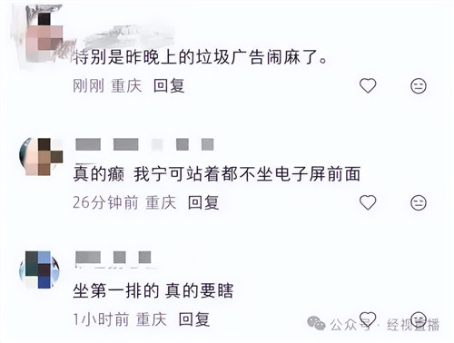 该网友发布的照片显示,公交车车厢前部安装了两块大型电视屏幕。记者尝试联系发帖网友未获回复,但在相关评论区,不少网友表示,近期乘坐重庆公交车时也注意到这一问题,认为加装大屏“既刺眼又扰民”。