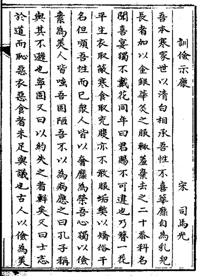 北宋司马光的名篇《训俭示康》,教导其子崇俭戒奢,选自江西省图书馆藏清代《古文辑略》。图片来源:中华古籍智慧化服务平台